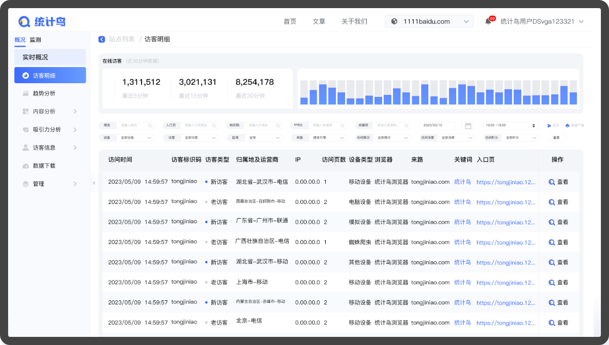 无成本接入,轻松聚焦用户路径和行为习惯,支持用户搜索行为,用户画像洞察,访客明细精确划分,全流程转化数据实时获取,强有力的数据和技术支撑,可极大减少业务测试和营销优化成本。