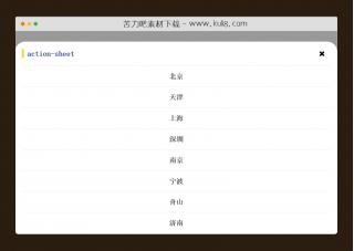 一款常用的移动端菜单,点击按钮触发从页面底部弹出菜单,可点击空白处或关闭按钮关闭菜单。