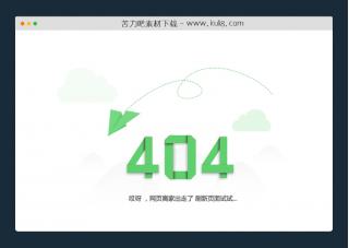 一款绿色风格404模板,整个页面只有一张图片,文本文字为:哎呀,网页离家出走了 刷新页面试试...