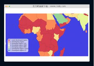 一款可自由缩放的世界地图代码,它使用D3创建SVG元素并将其添加到DOM,加载了两个文件数据,一个TSV文件和一个JSON文件,其中包含有关世界各国的信息。根据各国的经济GDP数据用不同的背景颜色填充地图上的国家。