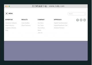 一款响应式带动画特效的导航菜单,点击menu按钮触发显示全屏下拉导航,带动画特效显示导航菜单。