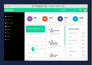 一款绿色风格响应式后台模板,共包含13个html页面,各种表单、统计图表、进度条、数据表格、分页等,简洁实用。