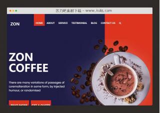 一款蓝色+咖啡色主题色的咖啡饮食网站模板,共包含6个html页面,全屏大气的幻灯片滚动特效。