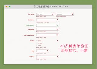 超过40多种各类型的表单验证,含:input/radio/checkbox/select等,此素材包有40多个html页面。