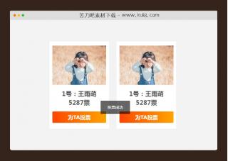 一款手机端人物评选投票系统,带活动规则和排行榜弹出层显示,可针对每个人物进行投票。