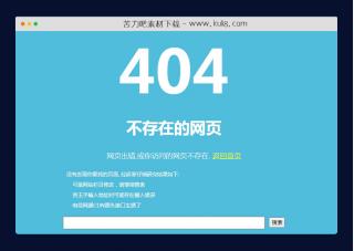 一个蓝色风格无图片页面404模板,纯文本文字+搜索模块,非常不错!
