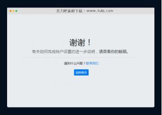 一款html5用户注册提示模板,文字提示:有关如何完成帐户设置的进一步说明,请查看你的邮箱。带返回首页按钮。