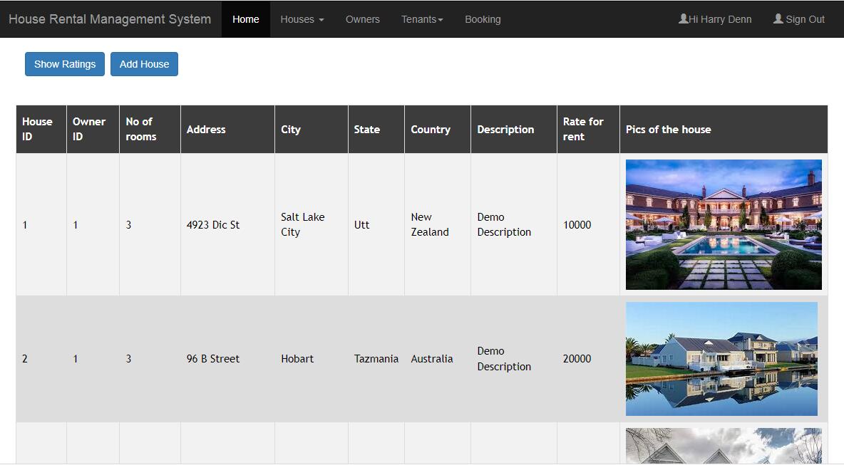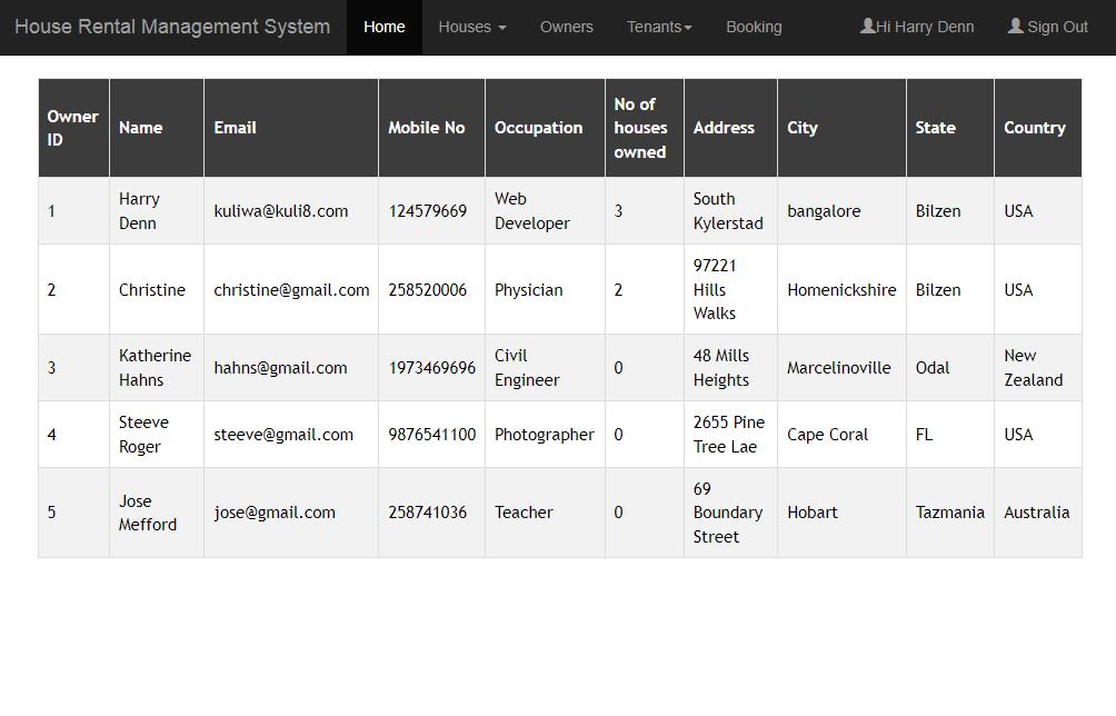 1、前台:包含两种会员类型(业主和租客),登录会员后分别可查看各种类型信息:全部房源、业主信息、租客信息、预订信息。那么,作为房屋业主可添加房源信息、查看预订表单等。