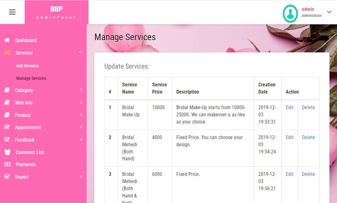 2、后台系统:服务管理、留言管理、分类管理、密码修改、安全退出等。
