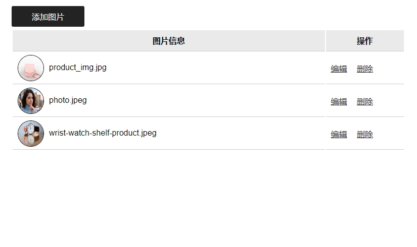 此源码程序主要实现本地图片上传到服务器文件夹,以及保存图片路径信息到mysql数据表,并且前台输出展示所有上传的图片列表,支持修改图片、删除图片。此源代码没有后台管理系统。