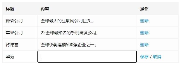 此源码程序主要实现table表格内实现单击鼠标快速编辑保存,而且还能自主新增表格行填写表单插入数据。