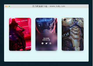 一款纯css悬停动画特效,当鼠标悬停于图片上时,会触发从图片底部向上拉伸展开显示的文本动画,以及设计叫媒体图标链接。