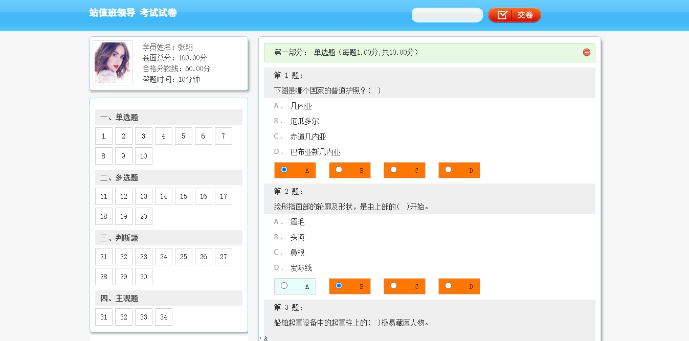 html电脑端远程在线答题考试单页模板