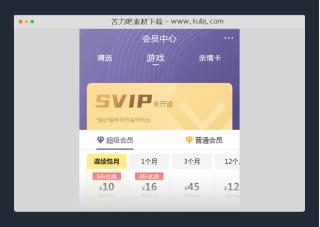 移动端app会员在线开通VIP页面模板