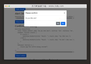 一款轻量级可自定义的弹出层插件,兼容电脑端和移动端,可自定义:提示框风格、自定义按钮、表单类型、是否带关闭按钮等。