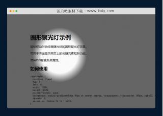 鼠标移动时始终跟随光标的圆形聚光灯特效,可用于突出显示网页上的任何位置元素文本文字。