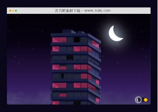 一款很灵动的白天夜晚切换动画特效,鼠标点击右下角的切换按钮,可触发月亮下落、太阳升起动画效果。