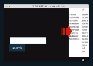 一款页面显示3D动画效果,点击右侧搜索按钮,可触发推拉门那样的水平横向动画,很有意思!