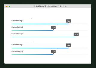 一款由JS+SVG生成的进度条动画插件,包含6种模式,可自定义设置:百分比数值、圆形背景色、进度条颜色、文本文字等。