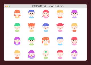20张男女可爱娃娃头像矢量图