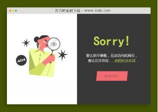 一款404响应式h5模板,布局一分为二左右两边展示,很有创意的设计。