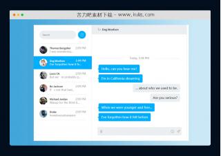一款html+css实现的聊天对话UI模板,鼠标点击左侧用户列表可切换到不同的聊天对话窗口。