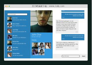 一款win8操作系统msg软件网页模板,响应式布局设计,共三栏:联系人、当前聊天好友、聊天界面。