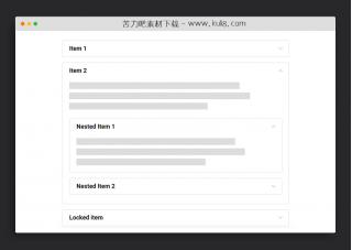 一款展开收缩的动画特效插件,点击手风琴式标题,可展开或折叠相关内容,点击一个标题同时关闭其它,带有淡出淡入的动画效果。