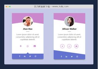 一款css卡片资料布局,鼠标悬停图标上会显示不同的动画特效。