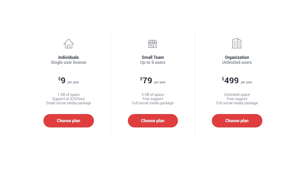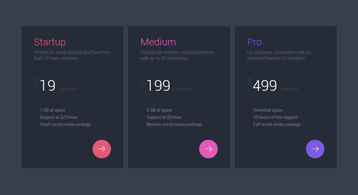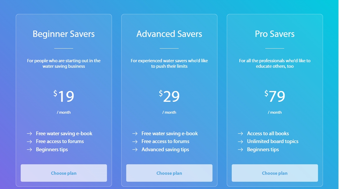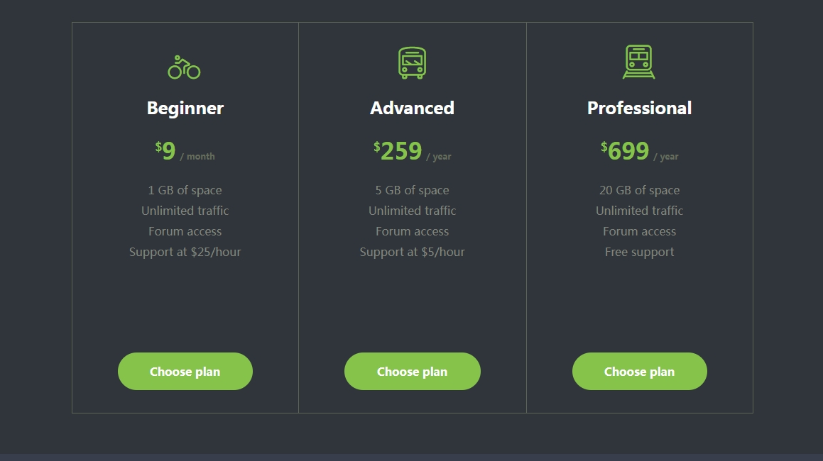 一款网站会员特权开通页面模板,三种会员类型卡片式三列布局。
