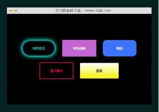 一款悬停按钮动画特效,集成了五种不同的悬停效果。效果包括发光边界动画、发光、阴影、脉冲和渐变动画。