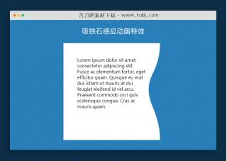 一款鼠标指针带吸力感应特效,共6种不同的动画特效,把鼠标移至内容边框触发特效。