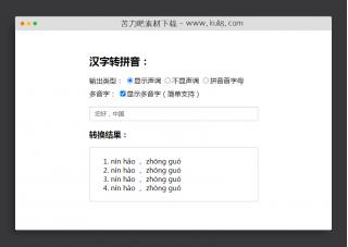 可自定义选择显示声调、拼音首字母、多音字等,一款非常实用的在线转换工具。