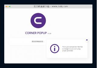 一款响应式弹窗特效代码,支持自定义参数,包括:显示位置、窗口颜色、弹窗文本内容等。