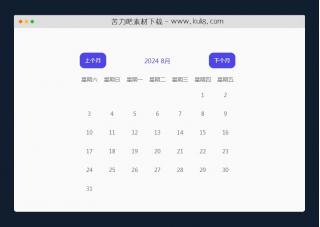 一个轻量级日历UI组件,可通过鼠标点击左右切换箭头,进行切换月份/年份,带星期几显示。