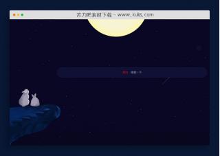 一款夜色中小白兔仰望月亮,带流星雨的网页动画背景,很漂亮!