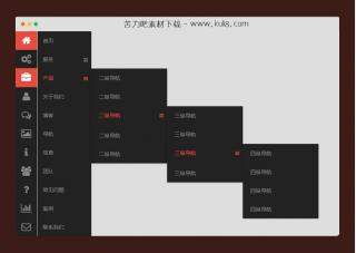 一款黑色风格侧边栏多级下拉垂直菜单,每一个导航菜单项带有一个小图标,支持无限多级下拉导航。