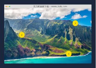 一款图片热点弹出层特效,基于css实现的图片上创建序号标注点,鼠标点击可弹出图文信息。